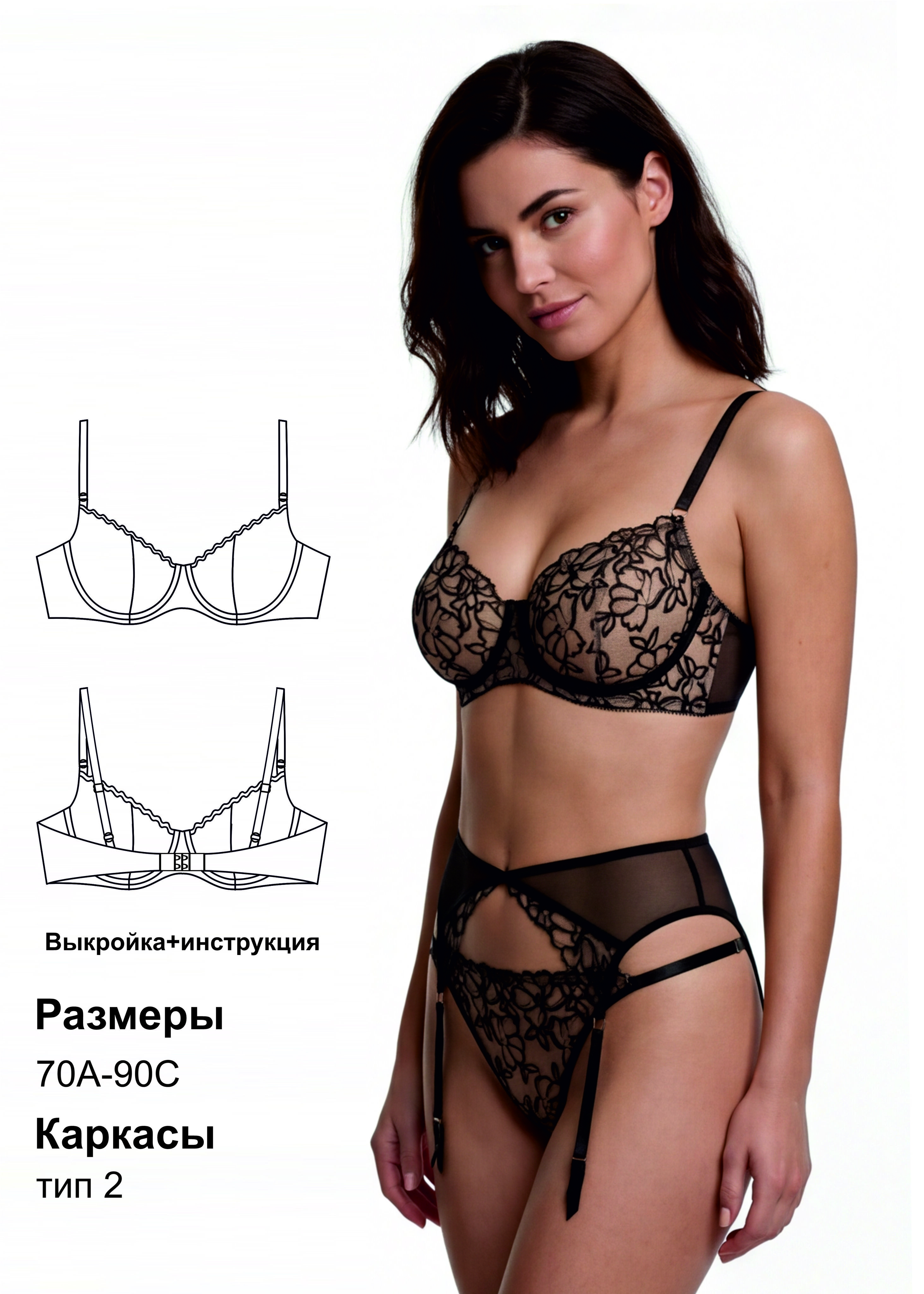 ВНИМАНИЕ! Полученный размер бюстгальтера может очень сильно отличаться от размера покупного бюстгальтера или от другого производителя лекал. Это нормально, т.к. производители используют разные методы конструирования, разный шаг градации размера и т.д. Всегда определяйте размер каждого производителя!